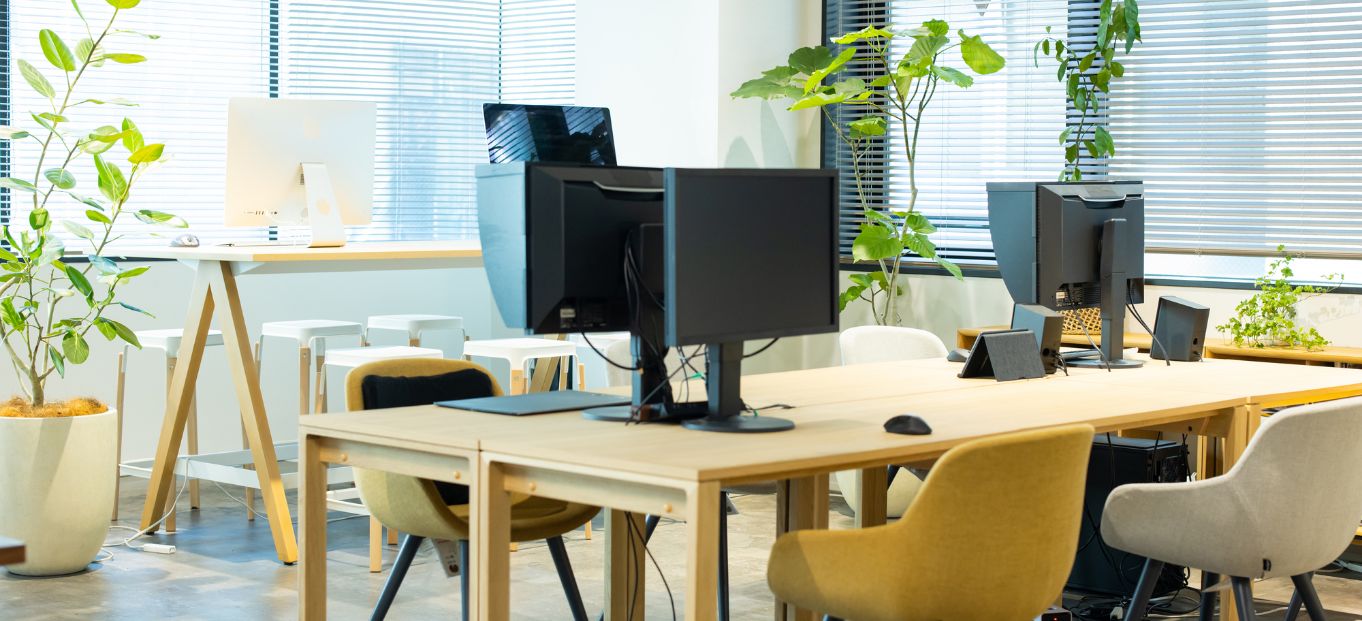 オフィス内は社員の固定席を設けず、日によって自由に席を変えて働くフリーアドレスを導入。業務接点の少ない社員同士の交流・情報共有・コミュニケーションの活性化を目的として促進を図っています。
